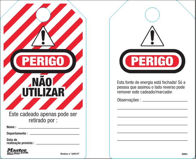 Etiquetas de bloqueio em português - "perigo - não utilizar" (cada bolsa contém 12)
